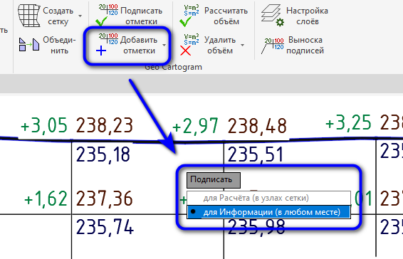 2. При добавлении отметок, можно выбрать проставлять где угодно (до сих пор можно было только в узлах сетки квадратов).