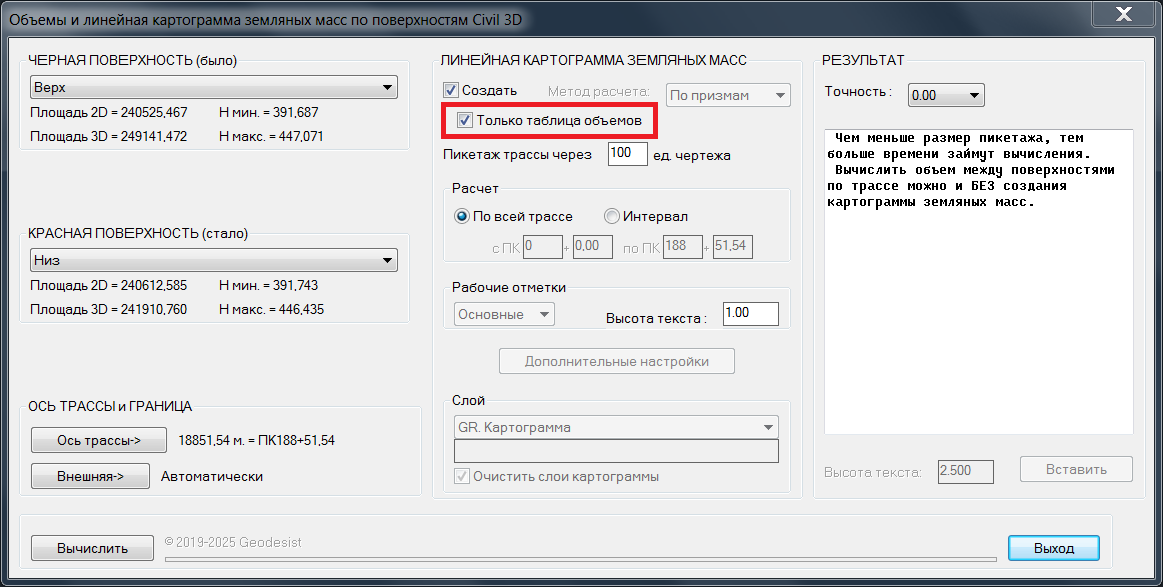 Объемы и линейная картограмма земляных масс Civil 3D