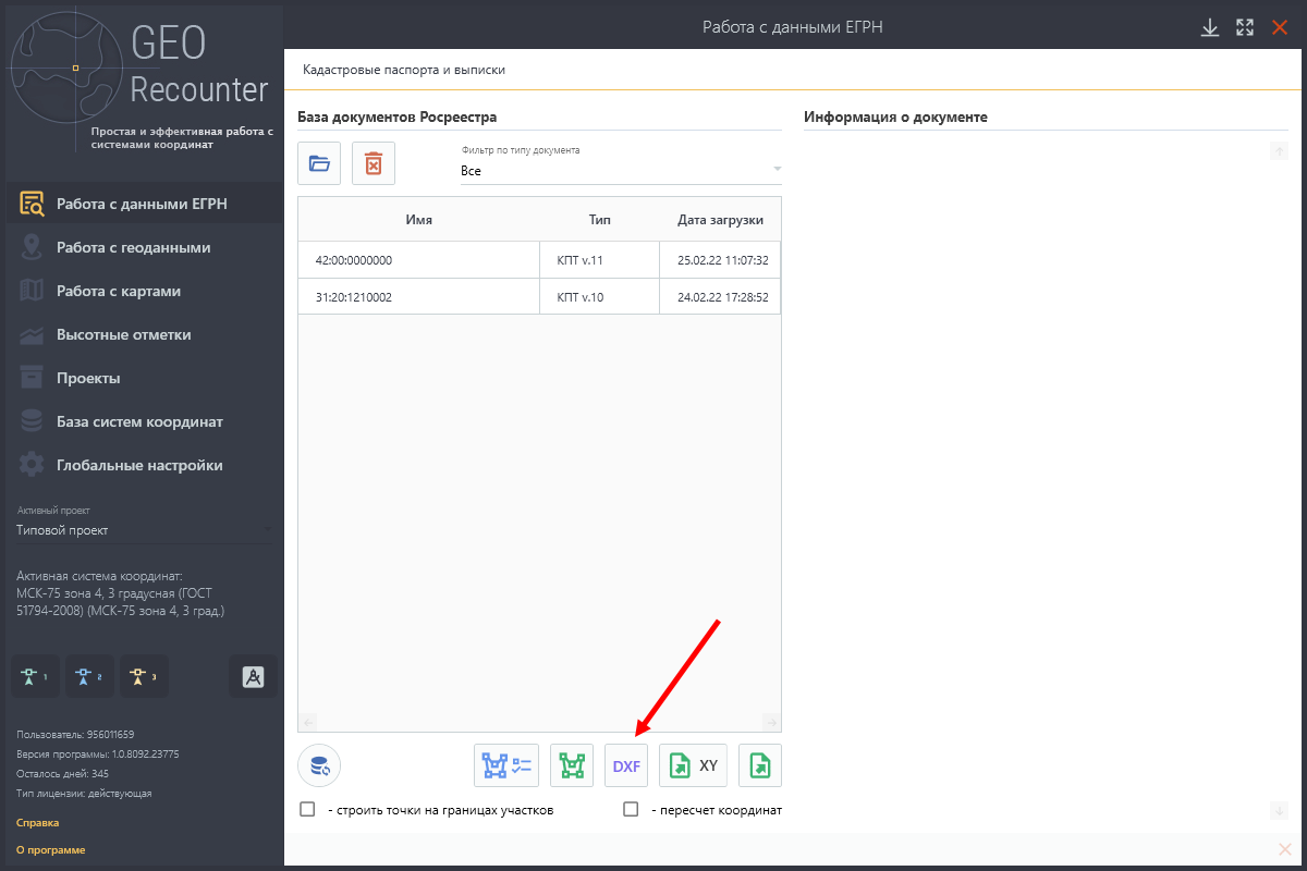 1. Добавлена возможность экспорта данных ЕГРН (КПТ и КВЗУ) в формат DXF как при полном экспорте КПТ/КВЗУ, так и при частичном экспорте КПТ. В том числе при пересчете координат «на лету». Это положительно сказалось на скорости обработки.