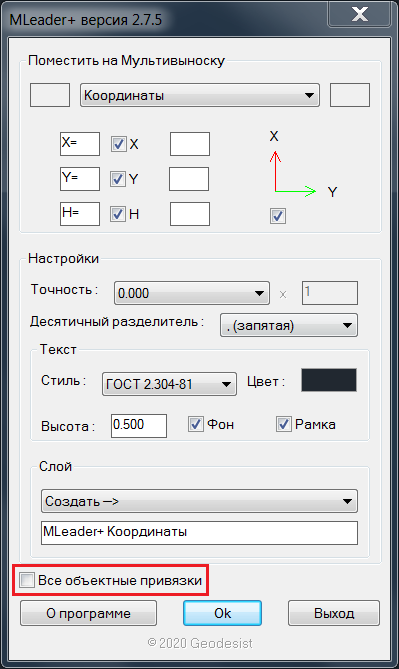 Координаты, Площадь, Объем, Длина на МультиВыноске