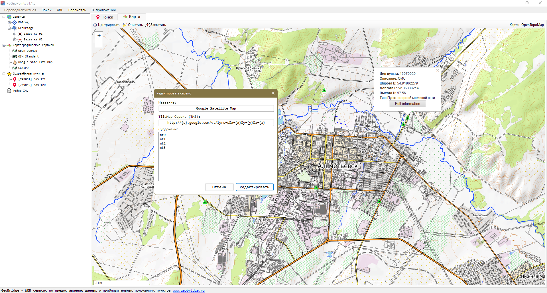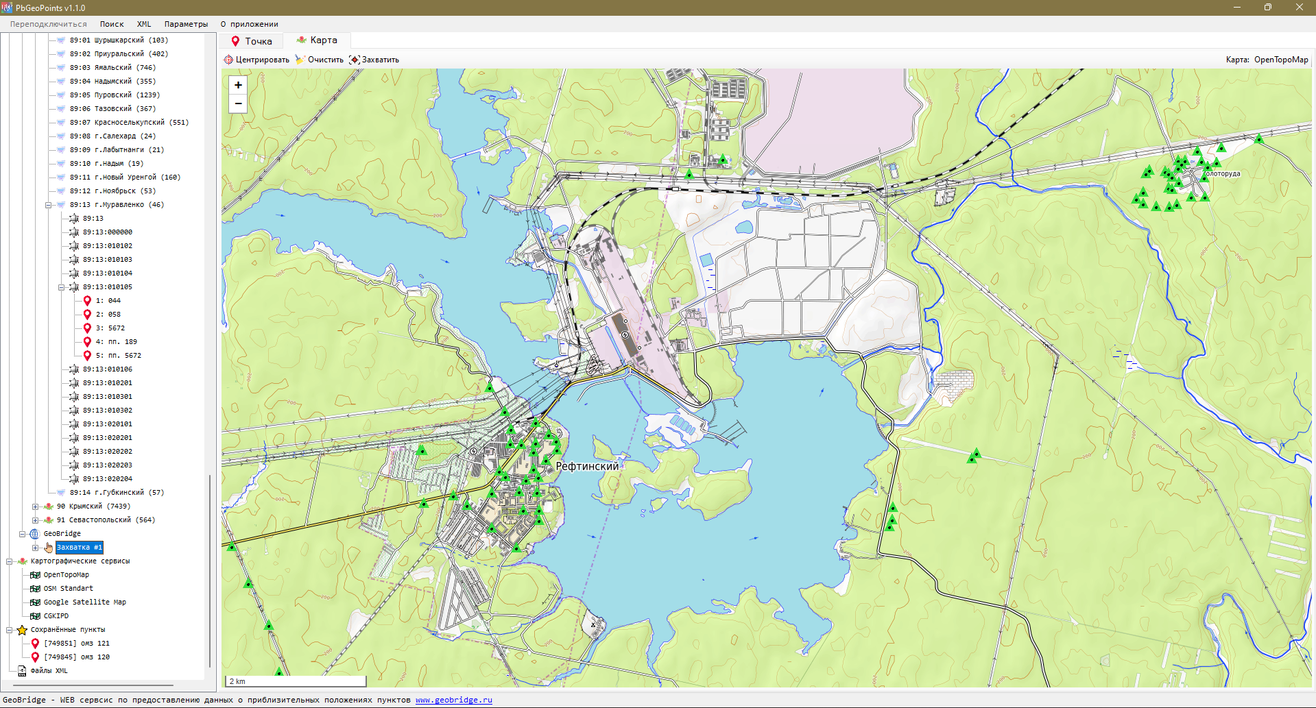 Программа для поиска геодезических пунктов c помощью сервисов PbProg и GeoBridge