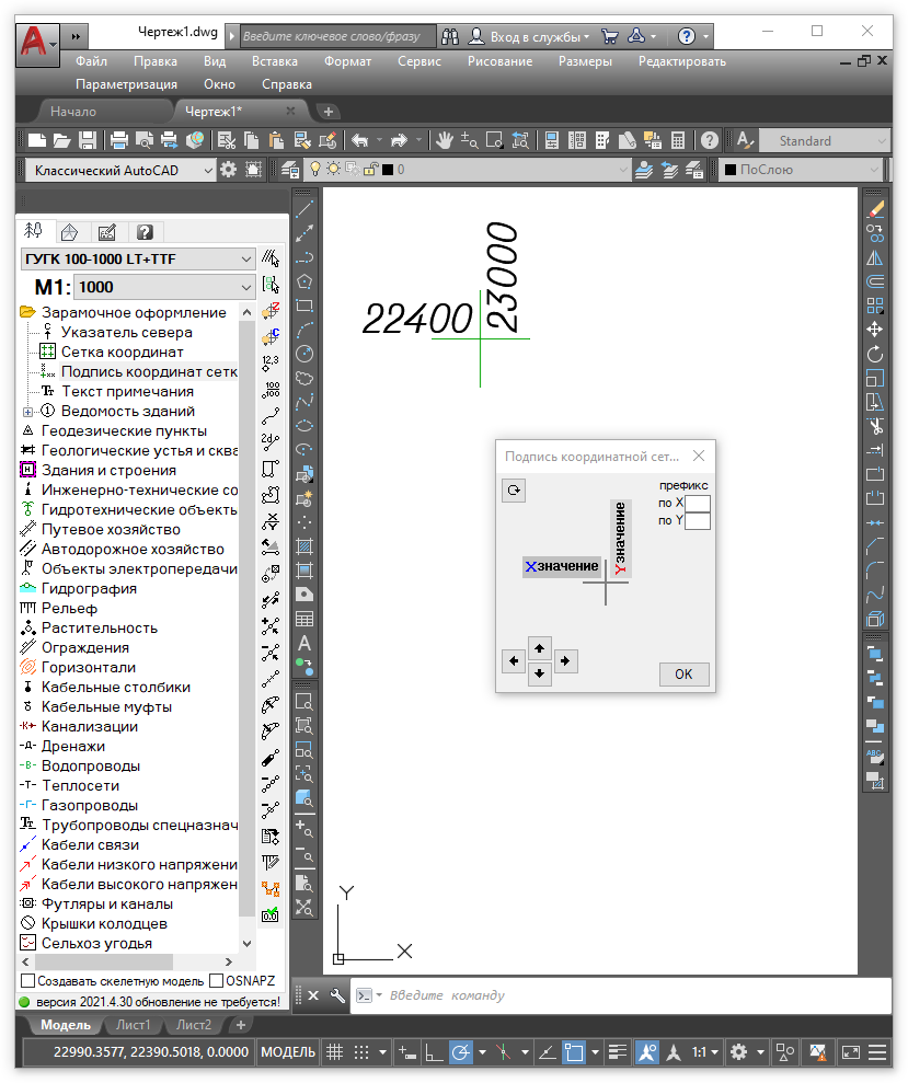2. Добавлена форма диалога для настройки стиля подписи координатных крестов (пересечений координатных линий).