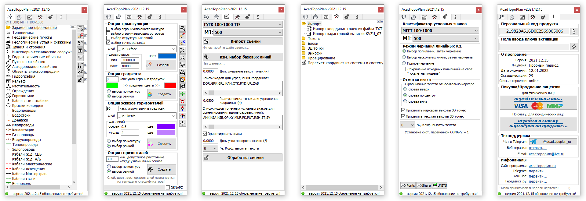 В значительной степени изменён пользовательский интерфейс. В частности, появились две новые вкладки. Одна из них - «Параметры», на странице которой производится выбор классификатора у.з., настройка режимов черчения линейных знаков, стиля подписи высотных отметок и др.