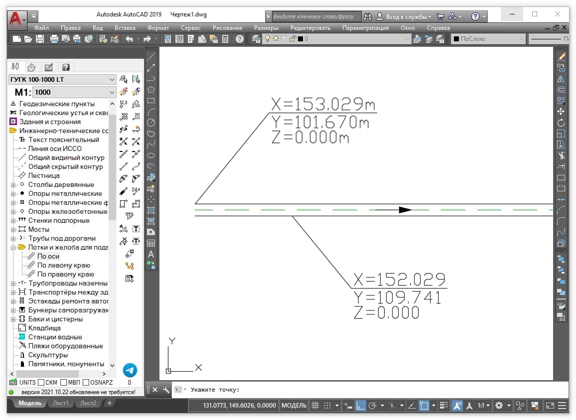 В качестве тестового варианта, для классификаторов ГУГК 100 - 1000, для лотков и желобов, добавлена стрелочка направления течения жидкости.