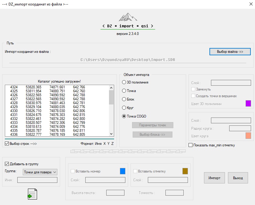 импорт/экспорт координат *GSI, *SDR, *RAW, *TXT