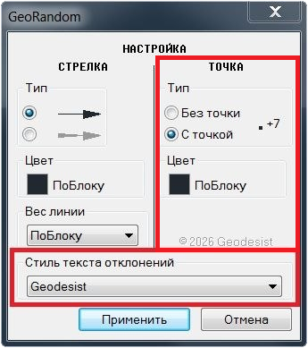 + ГР_СтрелкаТочкаНастройка к настройке Стрелки отклонений в плане, добавлена настройка Точки отклонений по высоте и настройка Стиля текста отклонений.