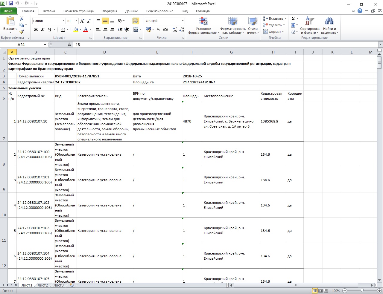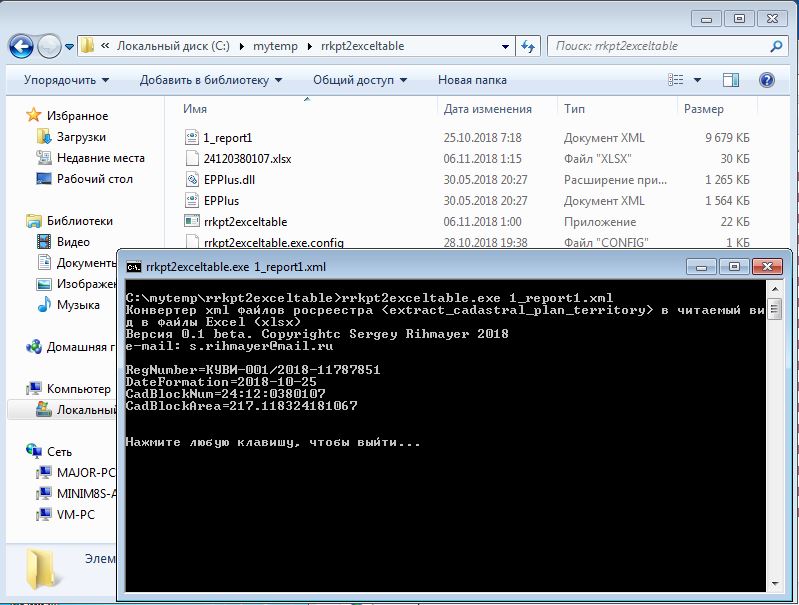 После преобразования рядом с xml-файлом будет создан файл xlsx с именем номера кадастрового квартала.
