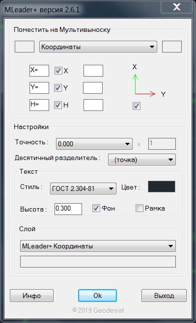 Координаты, Площадь, Объем, Длина на МультиВыноске
