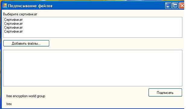 Программа подписывает файлы ЭЦП, для работы программы нужен net.flamework 4 версии