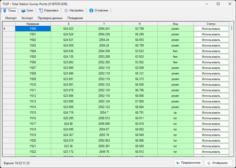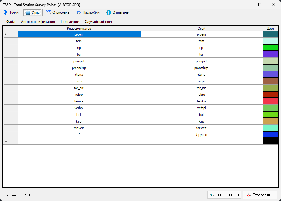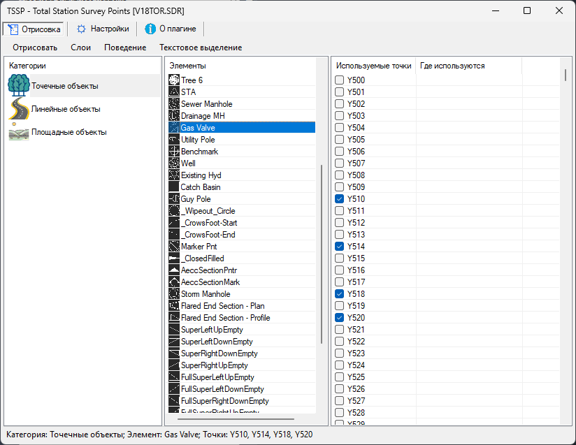 Плагин TSSP предназначен для использования в ПО AutoCAD/Civil 3D с целью импорта сырых данных с тахеометра/GNSS (а именно координаты) и последующей их обработкой в рабочей среде – сортировка точек по слоям, их отображение в пространстве рабочего листа, а также предварительная отрисовка топографического плана с использованием точечных, линейных и площадных объектов.