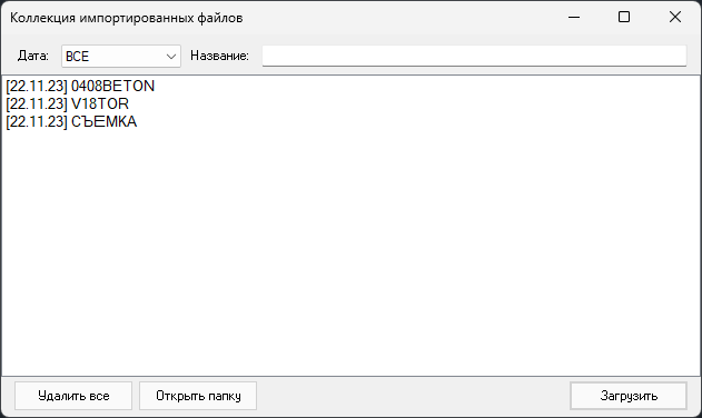 - На текущий момент плагин поддерживает следующие форматы импорта данных: *.GSI (версия 8 и 16), ASCII (*.TXT), *.CSV, EXCEL (*.XLS, *.XLSX, *.XLSB), IDX, RDF, SDR, Пользовательский импорт. Также присутствует импорт из буфера обмена, а также Excel.