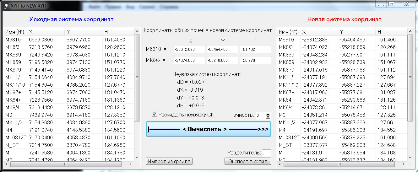 - Убрано усреднение СК на основе неувязки между ними (берутся средние значения), т.к. еще не определился как лучше реализовать и стоит ли вообще это делать по двум точкам (почти уверен, что не стоит).